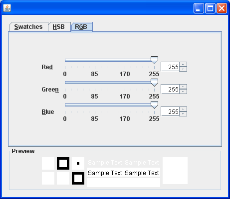JSlider : این کامپوننت شبیه کامپوننت Scrollbar از AWT بوده و برای گرفتن مقادیر از کاربر مورد استفاده قرار می گیرد. کاربر توسط آن می تواند از لیست مقادیر مشخص شده یکی را انتخاب کند.